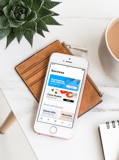 with delivery and pickup. Mobile app and account at hand.